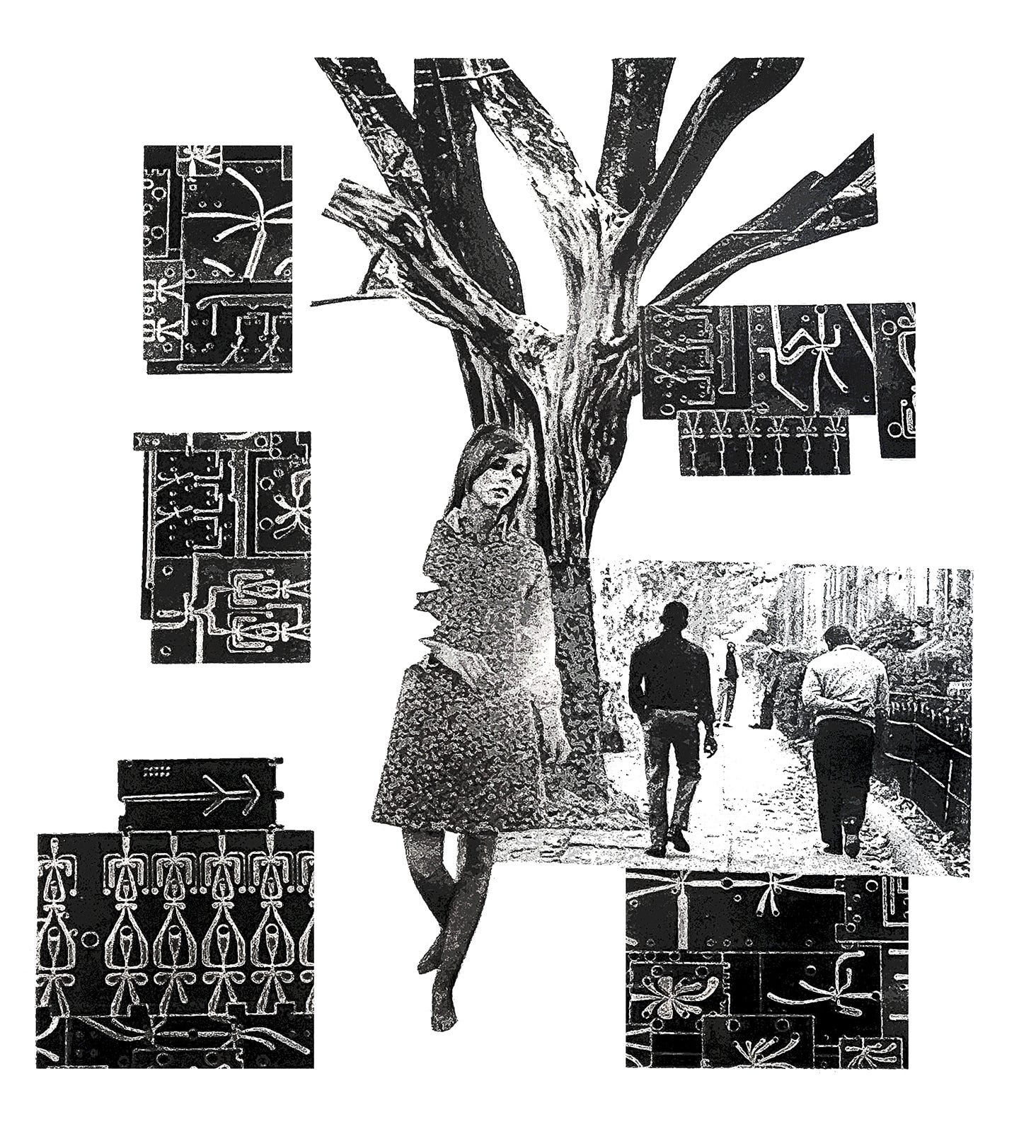 3. Original photograph montaged with AI oddments or stuff (Stable Diffusion) layered in Photoshop, early 2024. Transformational use of AI.