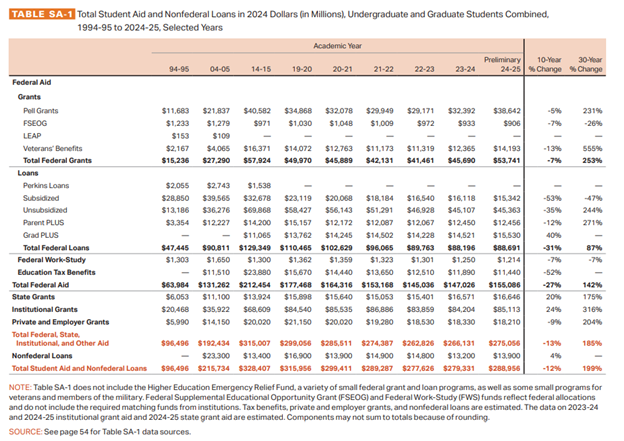 - Pell Grants accounted for most of this change, increasing by $6 billion.