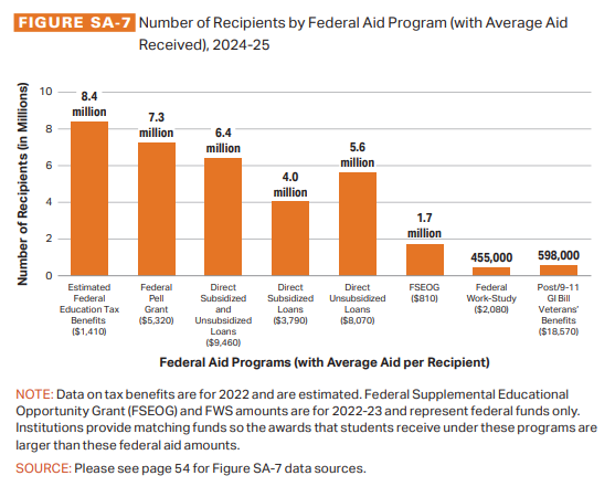 - Tax benefits and Pell Grants are the most common types of aid.