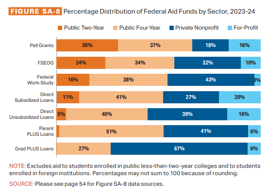 - The private nonprofit sector will feel the elimination of GradPLUS loans the most.